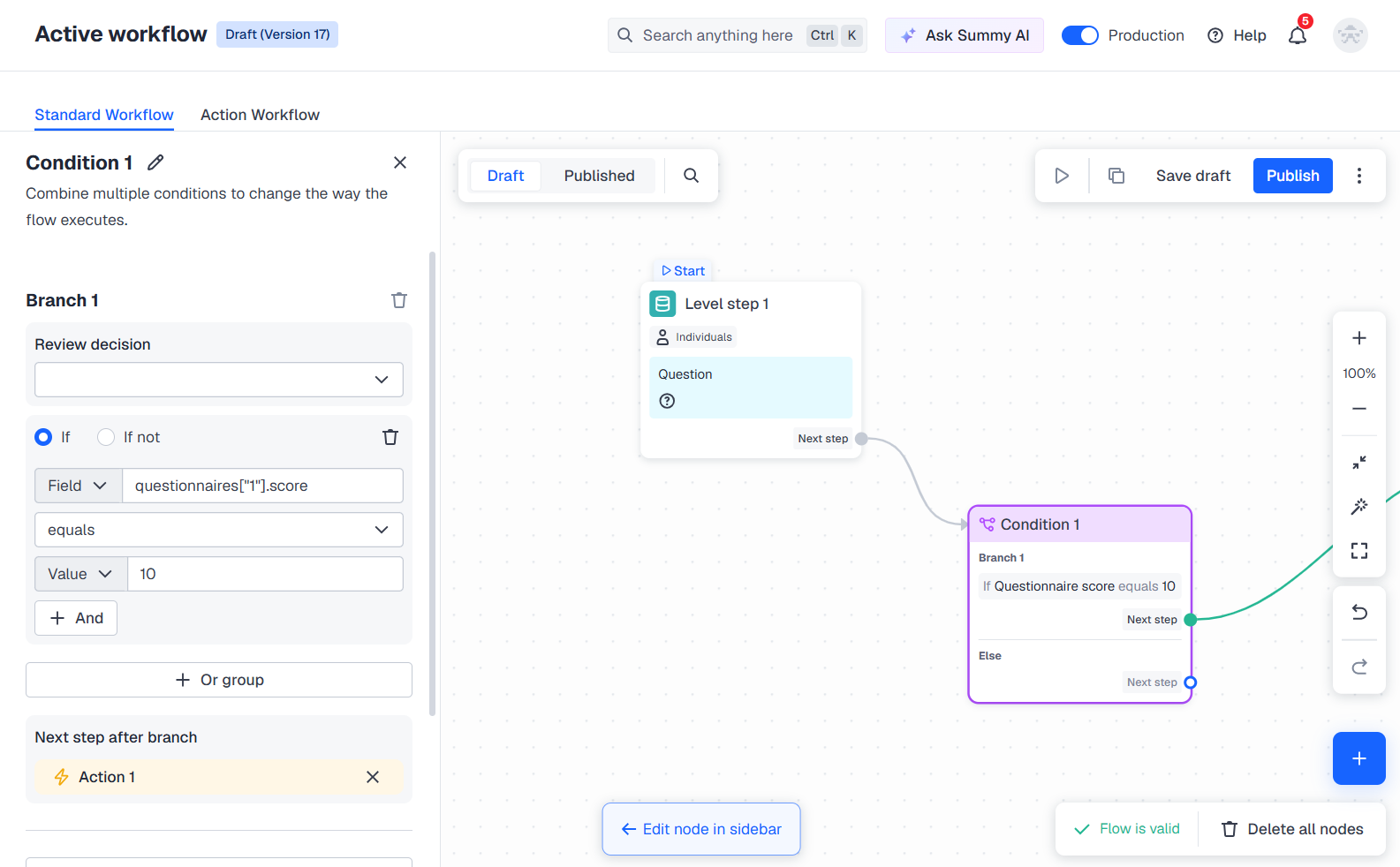 - Save the draft and experiment with your flow — create copies and conduct tests.