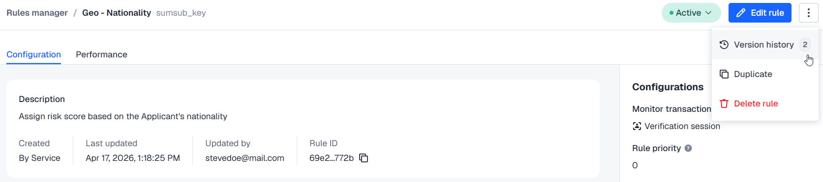Each update that you make to the existing rules is saved as an independent revision so that you can get back to any of the previous rule states: