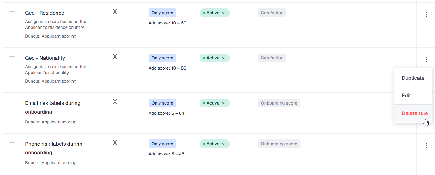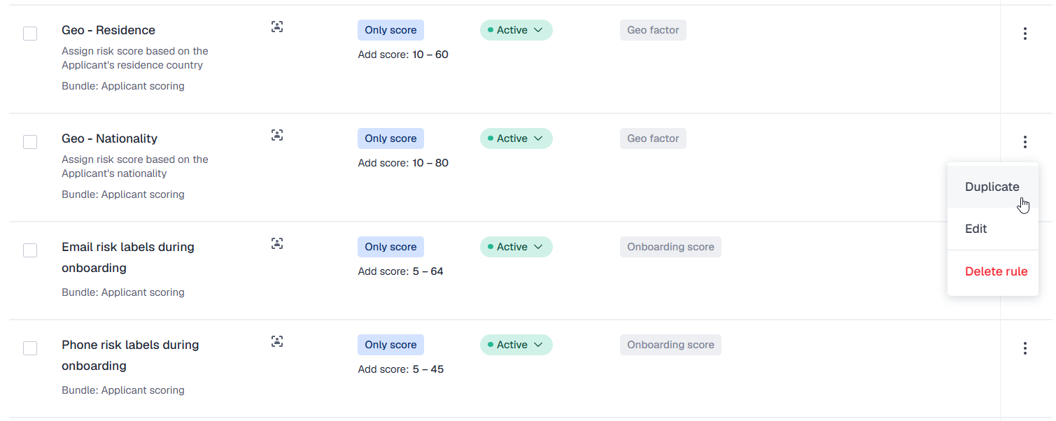 - Find the rules that you want to duplicate, and from the menu on the right, select Duplicate.
