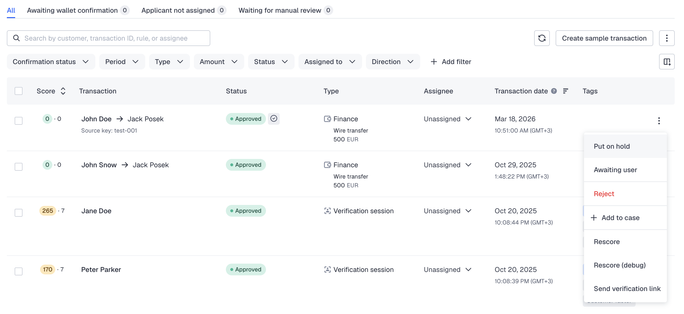 You can assign transactions to compliance officers.