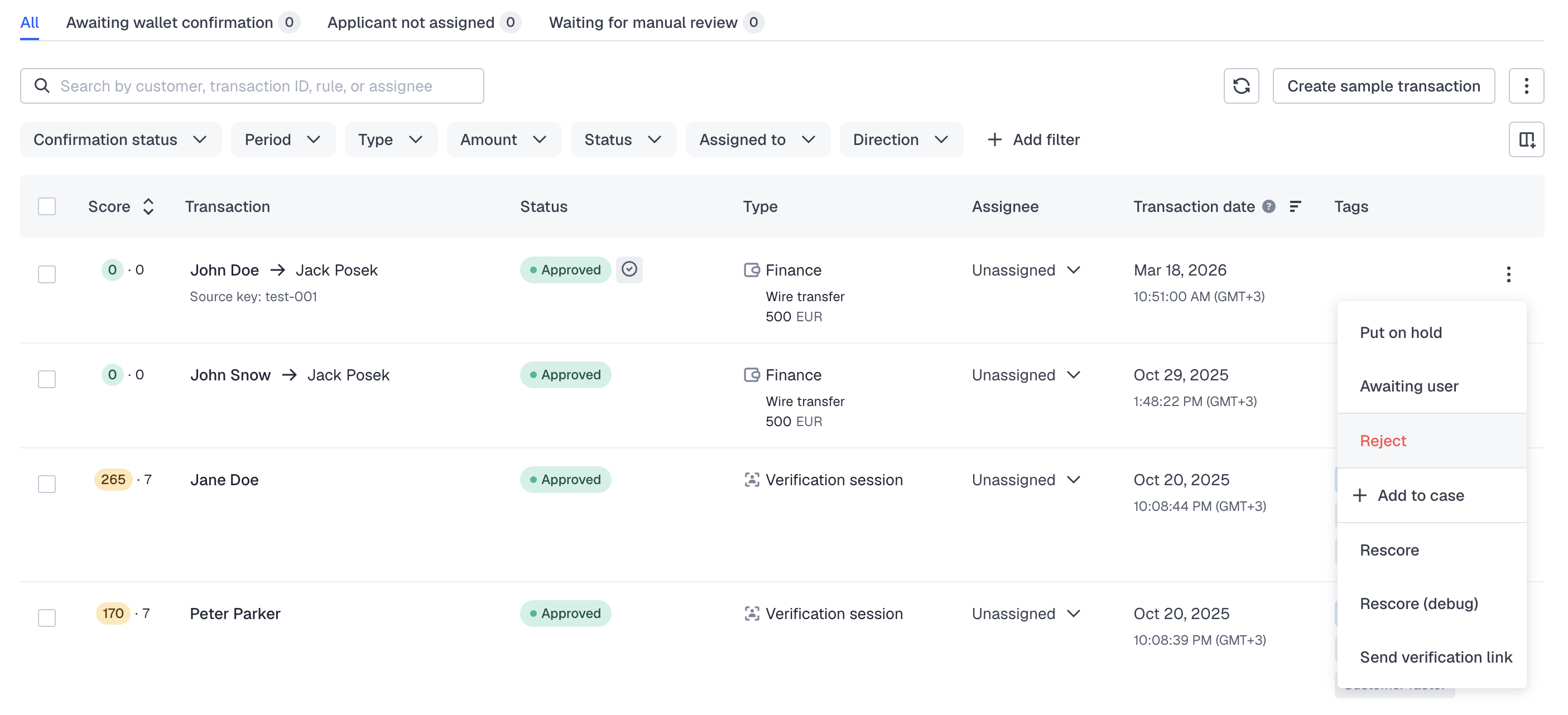 Approve and reject transactions