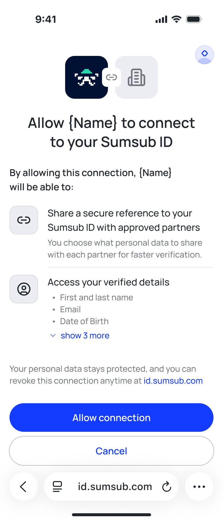 Streamline multi-partner KYC with Sumsub ID Connect.
